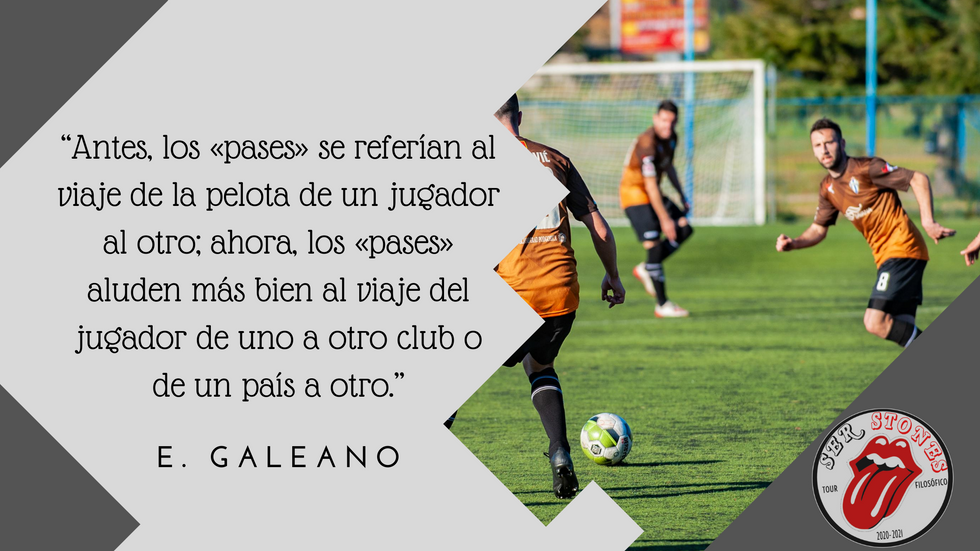 “Los dirigentes, los empresarios, los contratistas y demás cortadores del bacalao ocupan un espacio creciente en las crónicas futboleras. Antes, los «pases» se referían al viaje de la pelota de un jugador al otro; ahora, los «pases» aluden más bien al viaje del jugador de uno a otro club o de un país a otro.” (1995, Galeano, p. 59). El capitalismo establecido juega una vez más sobre la condición humana para extraer ganancias exorbitantes a costa de sus trabajadores, que en este caso son los futbolistas. Y, aunque estos también reciben cifras escandalosas, son una minoría teniendo en cuenta la totalidad, y los que lo hacen pagan el precio de su cosificación y del éxito desbordante que luego los diluye.